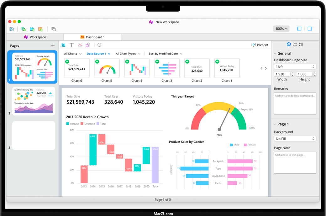 我们的智能图表工具中包含更多图表类型和新功能。连接到您选择的任何数据源,例如 Excel、Access 或 ODBC。您还可以通过更改字段类型、连接字段、映射值或基于其他字段顺序排序来使用自定义字段扩展数据。