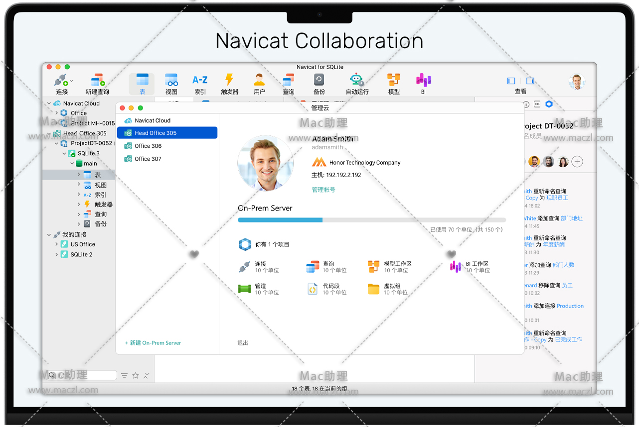 Mac版Navicat for SQLite 是一个功能强大且全面的 SQLite 图形用户界面,提供了一整套用于数据库管理和开发的功能。优化您的 SQLite 工作流程和生产力——您可以快速且安全地创建、组织、访问和共享信息。