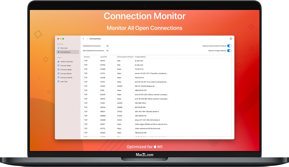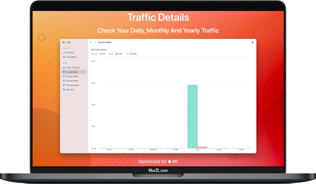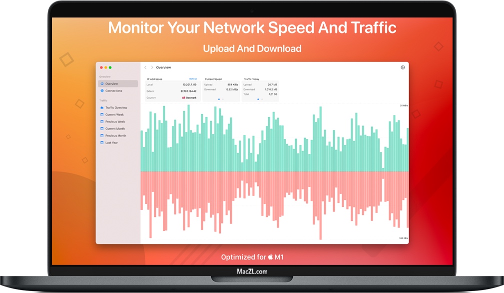 NetWorker Pro for Mac 是一款在macOS系统菜单栏中方便地显示实时网速信息应用。NetWorker Pro还有一个控制面板,可以通过图表的形式显示传入和传出的数据,可以查看网络连接端口数量以及IP地址和协议,可以按总量/本周/上周/本月/上月等方式查看网络流量。还提供了菜单栏流量显示样式自定义功能。