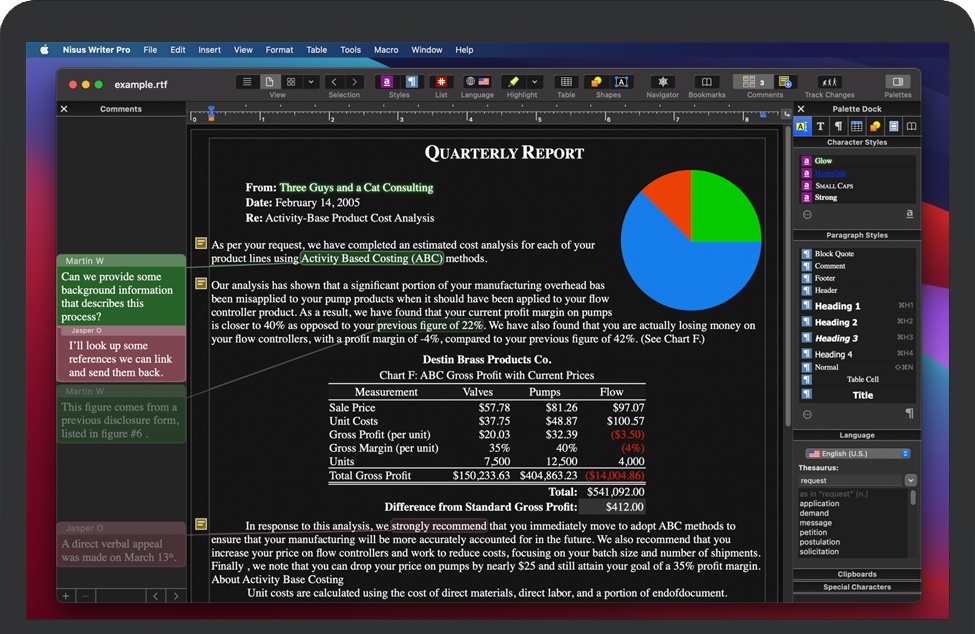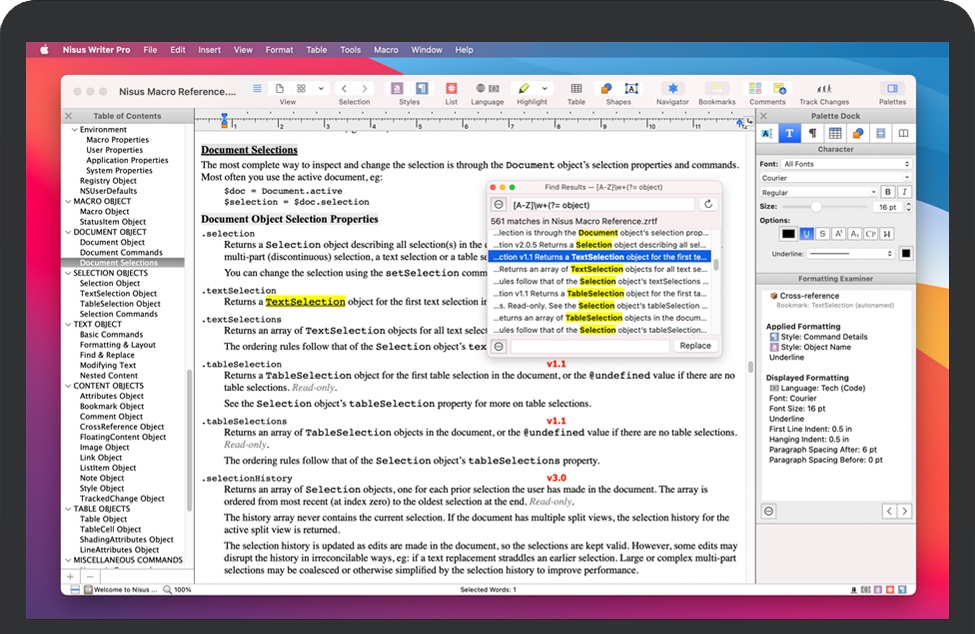 凭借多年来在 Mac 上开发文字处理的经验,Nisus Writer Pro 提供深度功能: