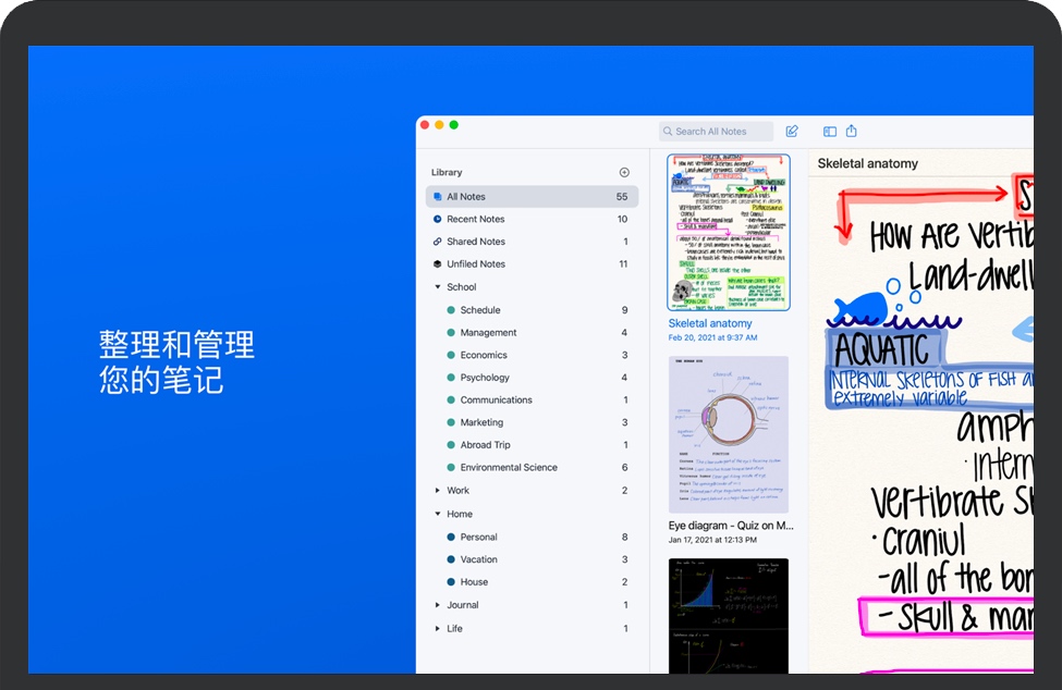 无论您身在何处,都保持井井有条并了解最新情况。有了 iCloud,无论在家、办公室还是在路上,您的笔记都可以随身携带。