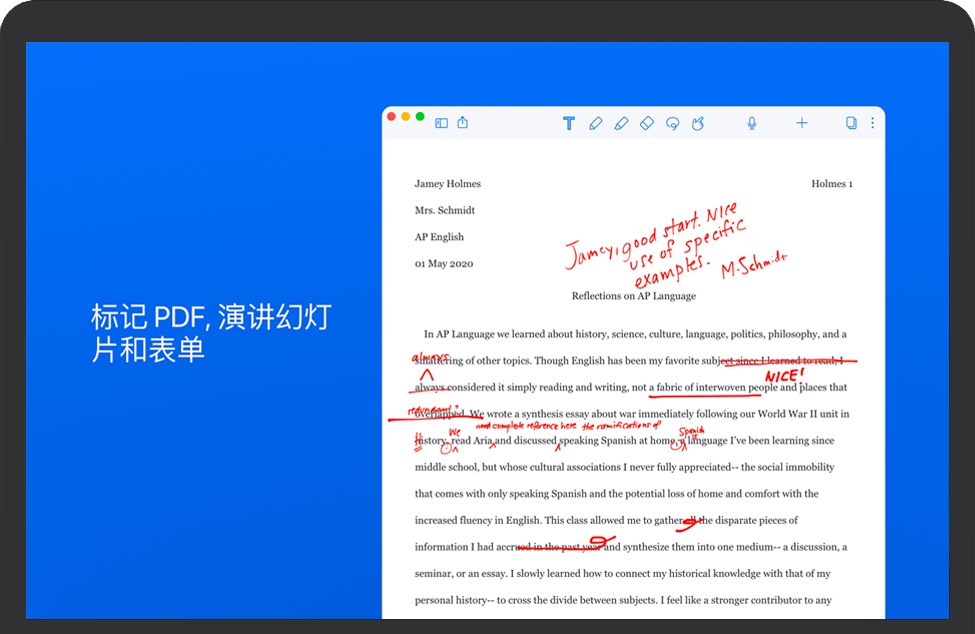 标记照片、注释 PDF 或创建原创内容以分享您的愿景。然后从您的团队接收口头和书面评论,以便轻松协作。您甚至可以在 iPad、iPhone 和 Mac 上查看与书面反馈相关联的音频评论。