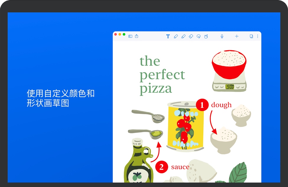•使用各种笔记、日记和绘图工具、例如墨水笔、荧光笔、文字和音频。