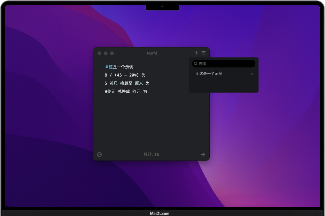 -单位转换器:Numi支持货币,长度,面积,体积,时间,温度和数据大小。如果需要,它将自动转换单位。