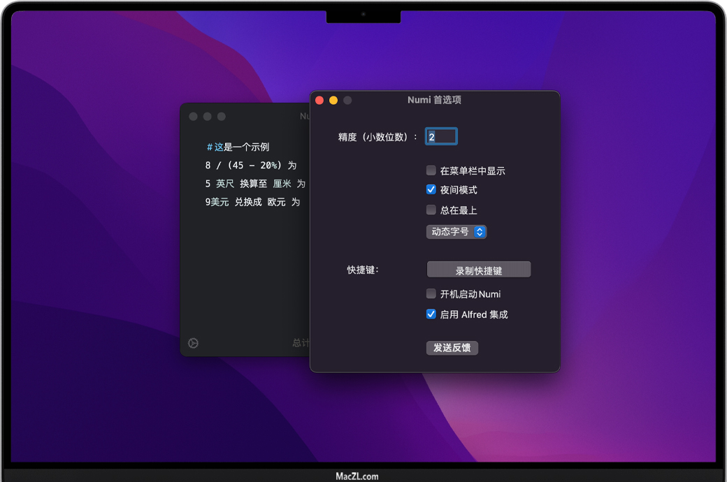 可配置精度:Numi在计算过程中使用最大可用精度。您可以配置要显示的小数位数。