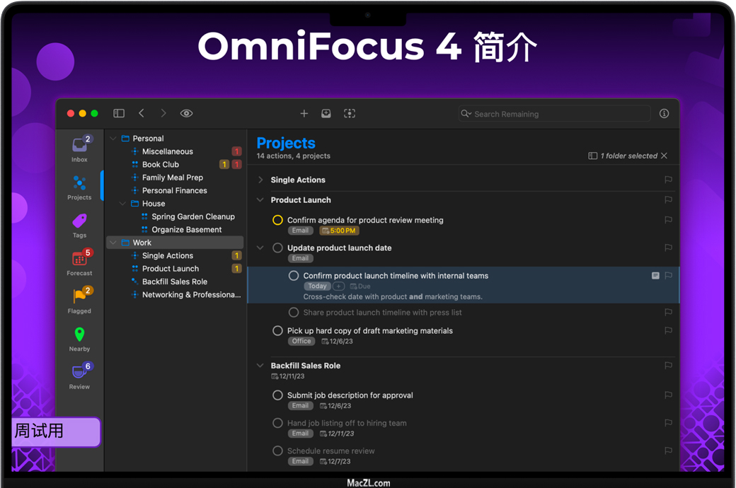 OmniFocus通过强大的功能帮助您将混乱转化为有序比如预测、项目和标记。