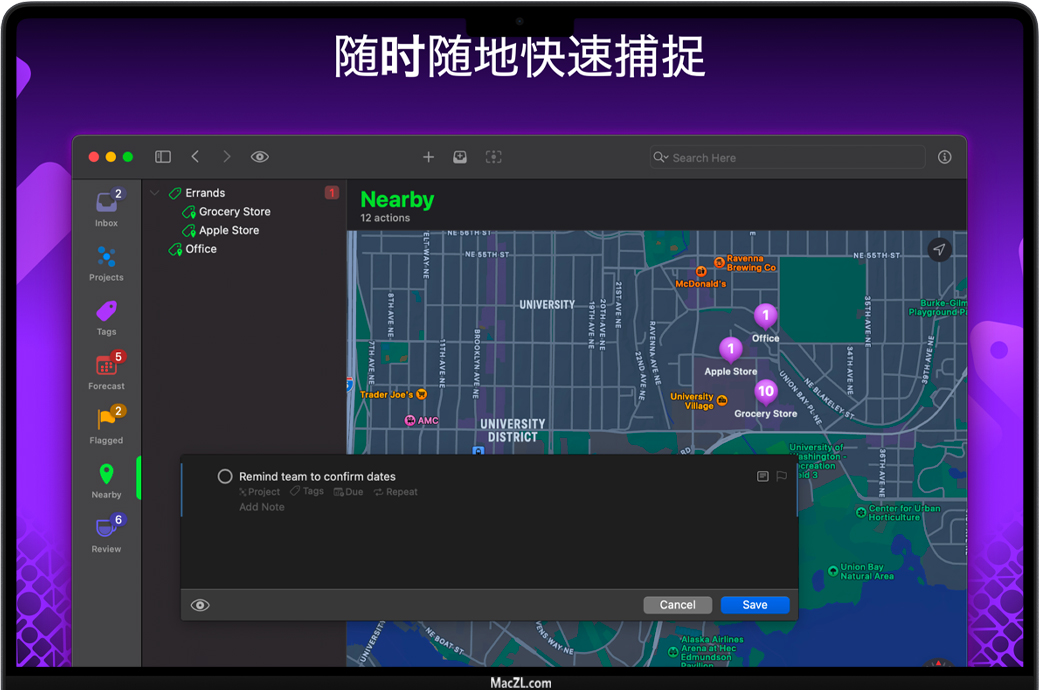 OmniFocus充当第二大脑,让您能够捕捉和用强大的易于维护的系统。