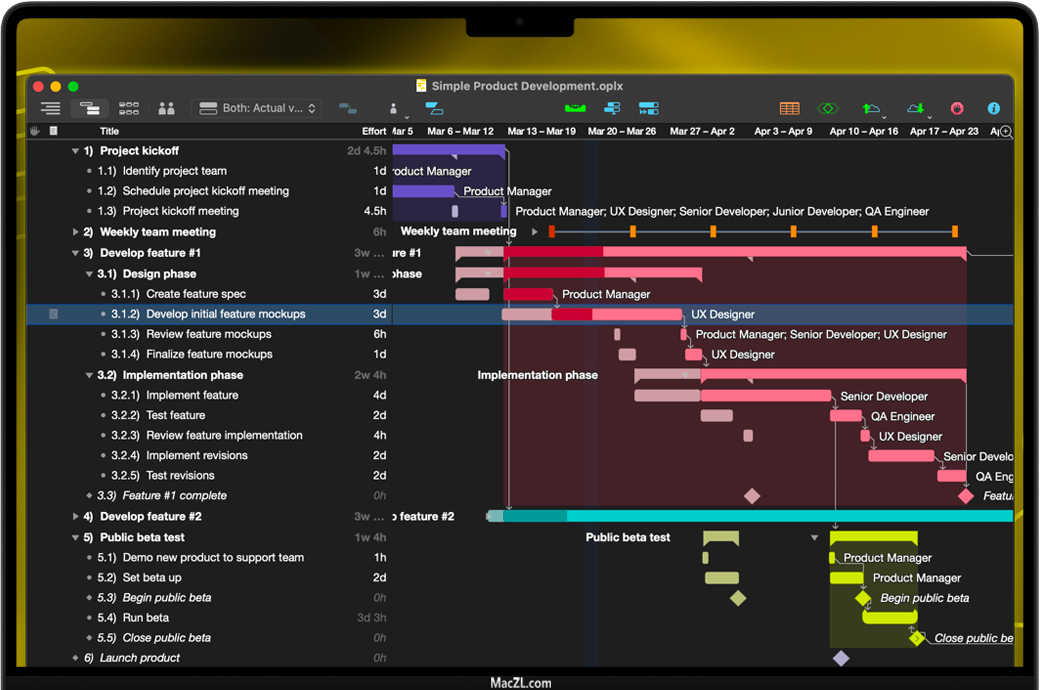 - Monte Carlo 模拟 [新增!]:迅速运行多个模拟,预测里程碑的完成日期及相应的可能性。 -Microsoft 项目导入/导出:在 OmniPlan 中直接打开 Microsoft Project 2013 或更早版本的文件并导出到 Project 2013。