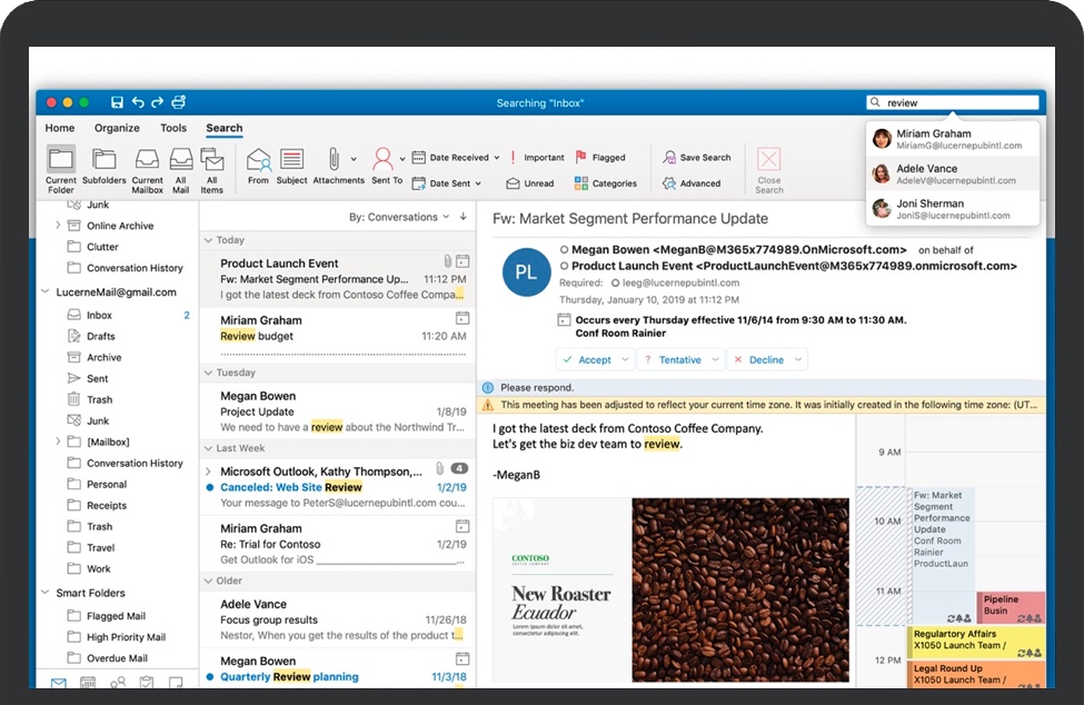 Outlook 2021 for Mac 是Microsoft Office套装的组件之一。Outlook的功能很多,可以用它来收发电子邮件、管理联系人信息、记日记、安排日程、分配任务。Outlook for Mac 将您的电子邮件,日历和联系人集中在一起,因此您可以高效地工作。Office集成使您可以从OneDrive共享附件,访问联系人并查看LinkedIn个人资料。