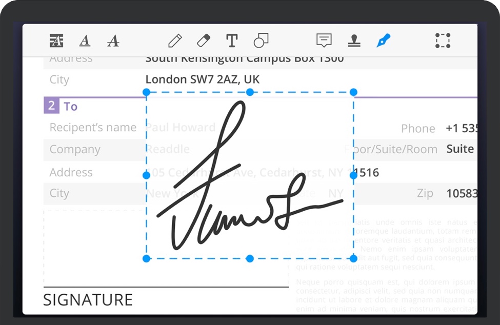 使用精美的自定义签名,单击几下即可签署合同和发票。