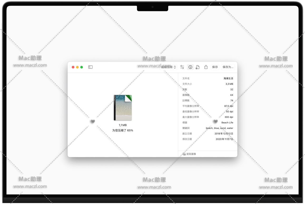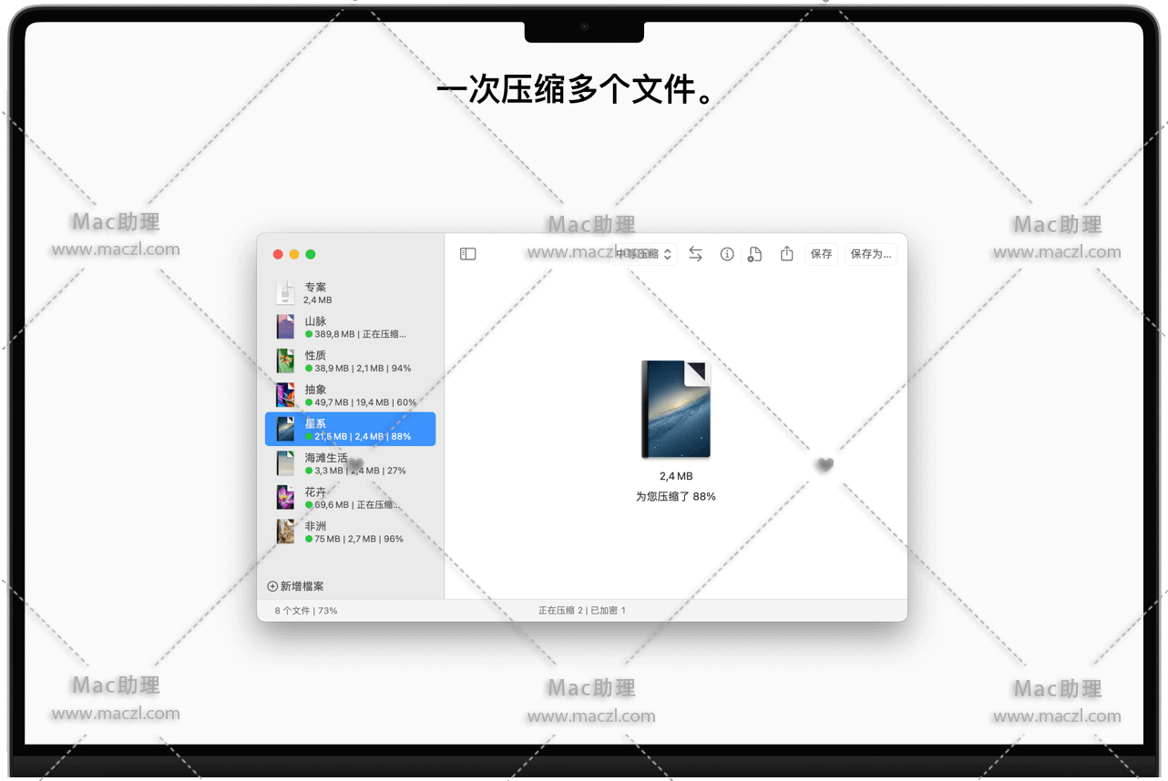 批量压缩多个文件。打开一堆文件或整个文件夹,然后观察文件如何缩小。该应用程序可轻松处理大量文件。