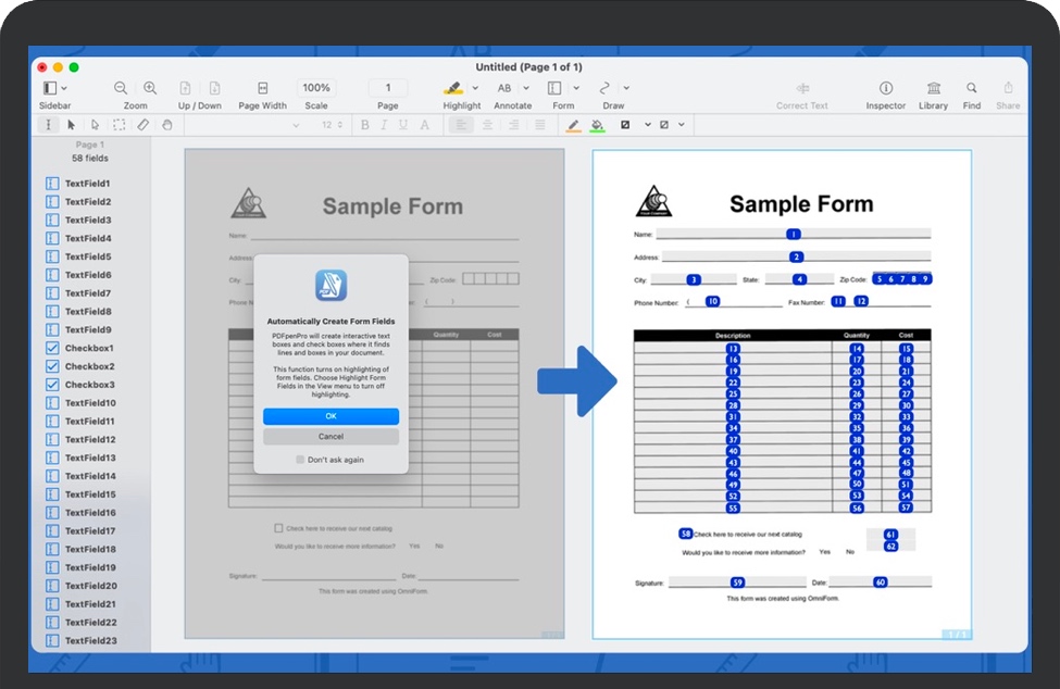 自动生成可填写的表单字段