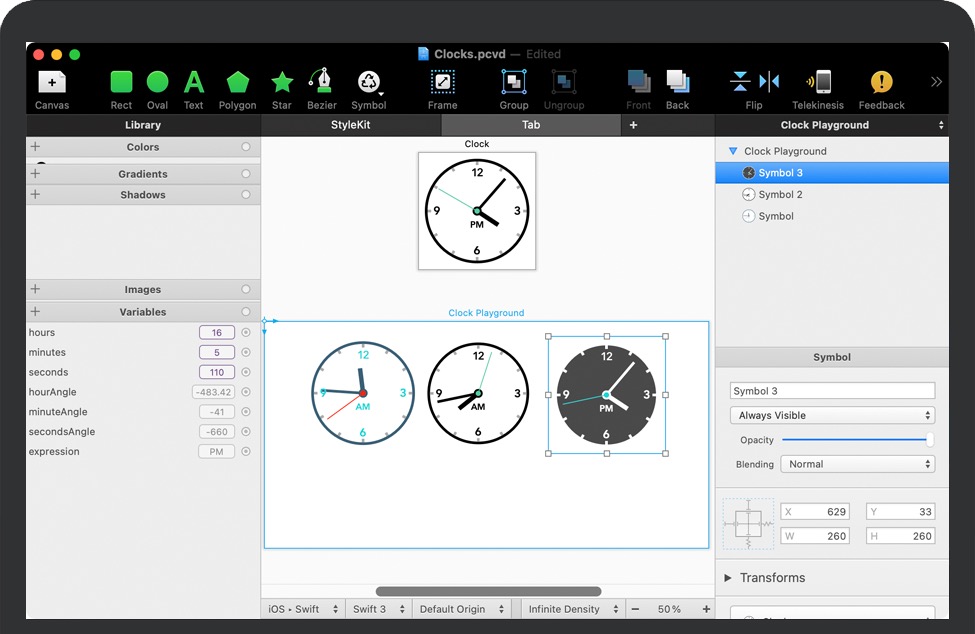 PaintCode 3 添加了对 Swift 3、4 和 5 的支持,完全兼容 Xcode 10、iOS 12 和 macOS Mojave。通过仔细分析 Swift 编译器并为其定制生成的代码,我们能够在许多常见情况下将编译速度提高 150 倍以上。