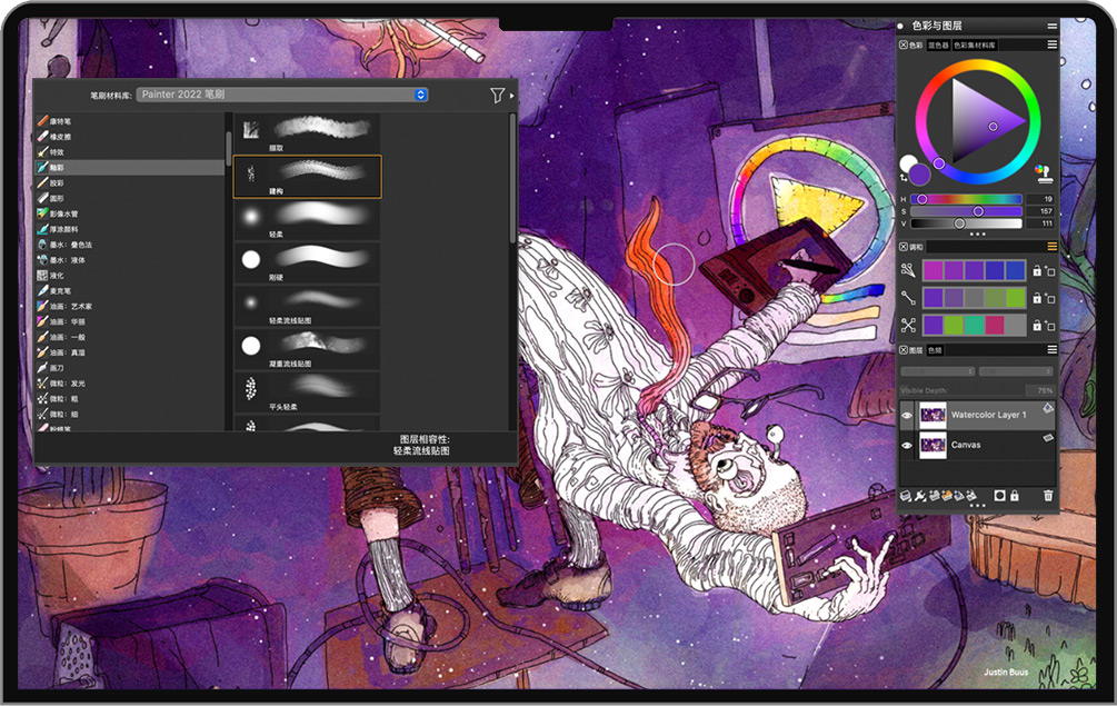 Corel Painter 2022 for Mac 是一款经过时间考验的原创数字绘画软件,专为艺术家和艺术家制作。素描、绘画、插图和制作无与伦比的照片艺术,包括数百支由艺术家创作的写实画笔、卓越的混合、令人印象深刻的纹理和一系列多功能的艺术工具。运用Painter的数位艺术创作软件,创作更上层楼的作品。