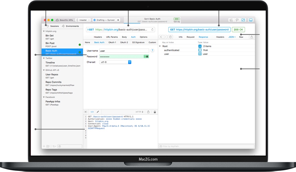 发送各种HTTP请求!测试和迭代自己的API或探索新的API。Paw具有功能齐全的可视化编辑器和HTTP工具集。