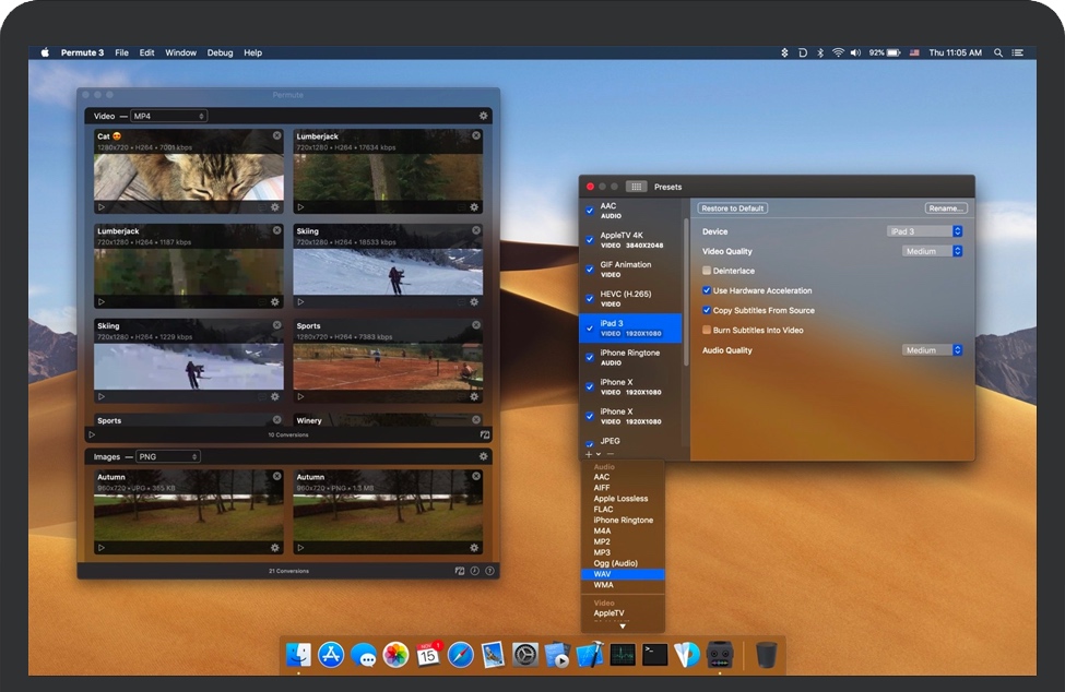 视频,音频和图像文件具有多种不同的类型和形状,但是有时您需要特定的格式,因为您的iPad或DVD播放器无法播放该视频。这就是Permute的目的!