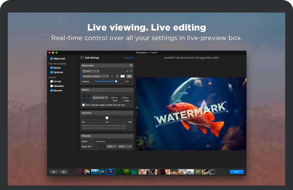 使用PhotoBulk 2节省您的图像处理时间–用于批量/批量调整大小、优化和将水印应用于照片和图像的简单应用程序。