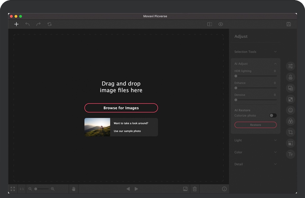 智能修复颗粒状照片并整理低光图像。我们适用于Mac的图片编辑器会让您惊讶。