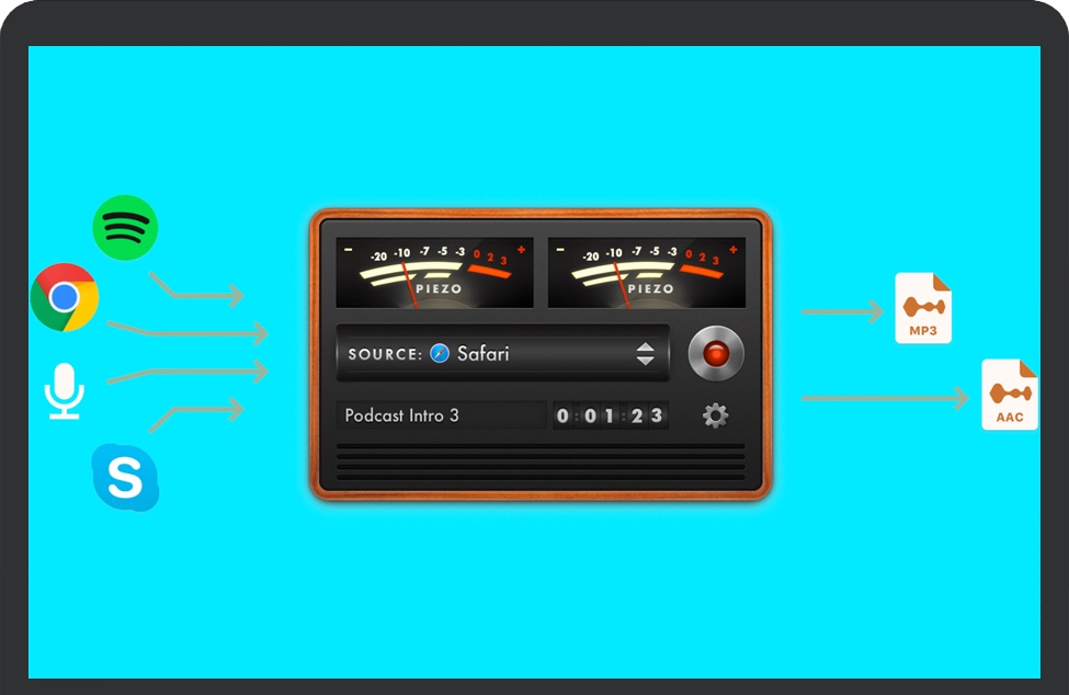 Piezo 几乎可以从 Mac 上播放的任何应用程序中捕获音频。