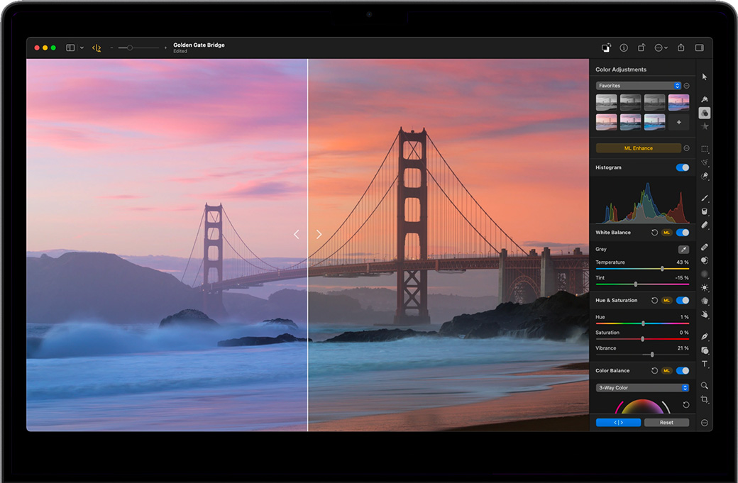 •使用基于 Core ML 的 ML 增强功能将照片自动调整至最佳状态。