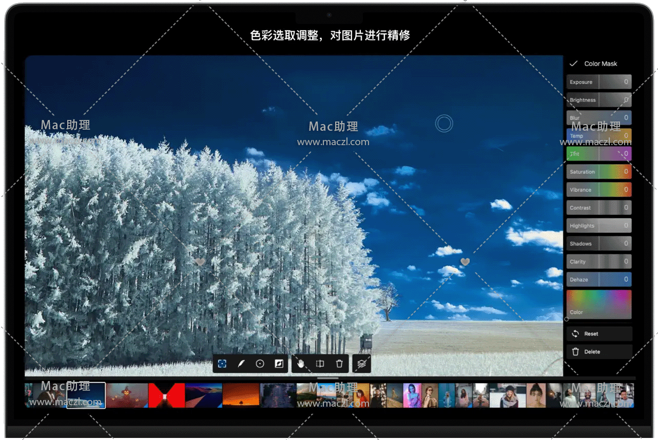 - 局部调整辅助工具:虚化、反选、羽化等等工具