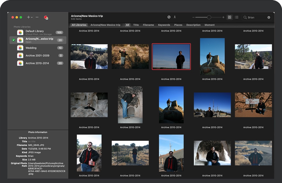 PowerPhotos 不仅限于将您的所有照片都放在一个库中,它可以与多个照片库配合使用,为您提供更多选择来组织不断增长的照片集。