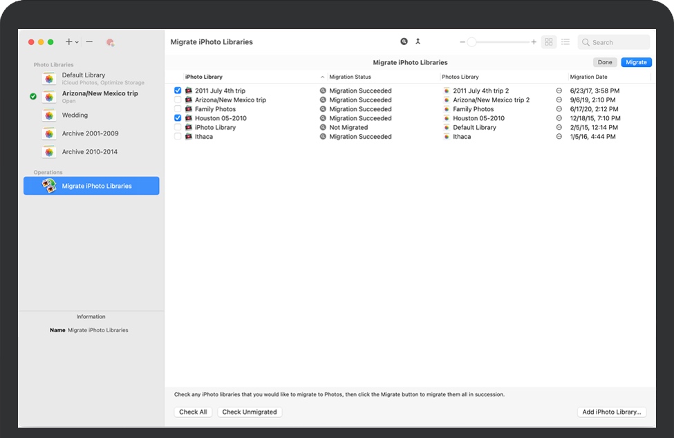 如果您有很多现有的 iPhoto 或 Aperture 库想要迁移到照片,PowerPhotos 将帮助您自动迁移,这样您就不必花时间照顾这个冗长的过程。