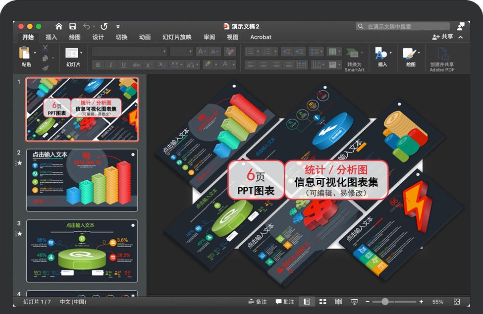 利用 PowerPoint 中的“设计器”和“创意”,创建设计精美、影响力十足的幻灯片。