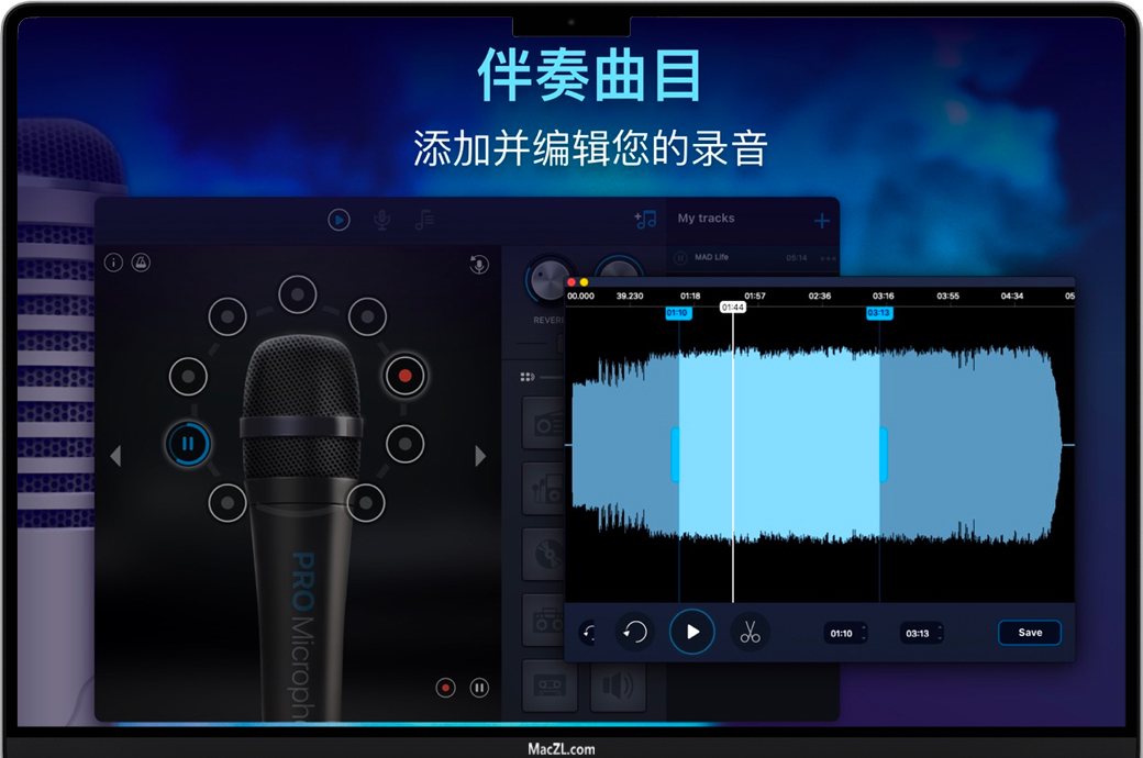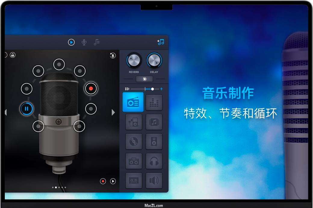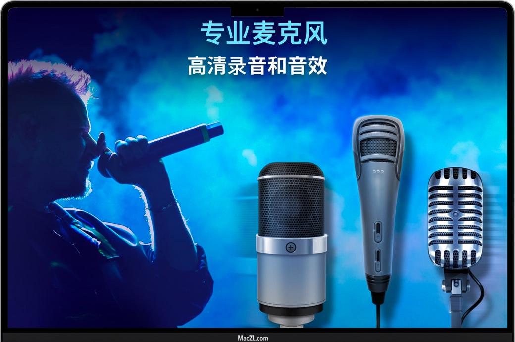 专业麦克风能够使您的声音听起来更响亮!唱歌并保存所有歌曲,选择适合您心情的不同麦克风!专业克风始终在Mac中。 不同麦克风类型
