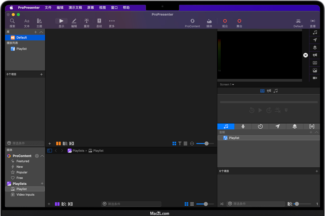 全新的ProPresenter 7界面代表了我们对UI的最大更新之一,与当今的生产环境保持一致。它经过重新组织,精简和变暗,以便于查看和操作。