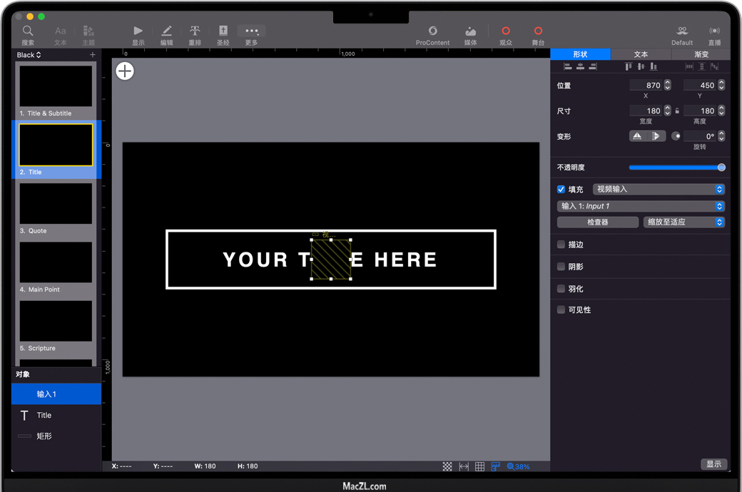 制作高质量视频的能力变得越来越容易,这使得视频在作品中的使用比以往任何时候都更为普遍。ProPresenter视频引擎(与PVP3的核心相同)是呈现最终编辑的理想方式。