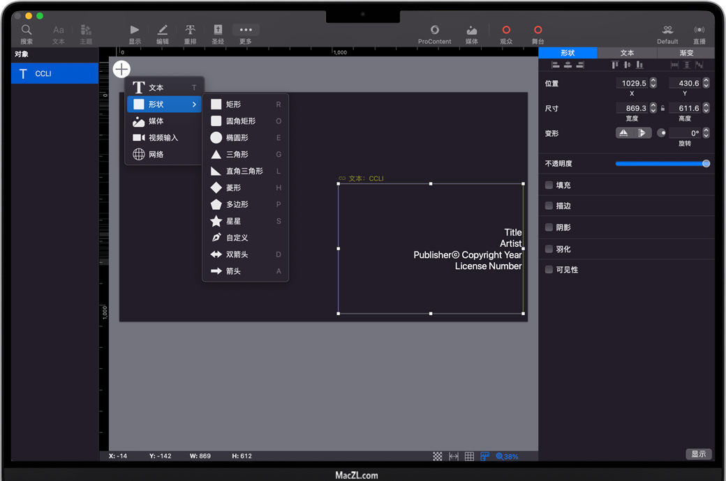 ProPresenter for Mac 是一款优秀的现场演出和媒体演示的多屏程序,能够无缝显示歌词,幻灯片和媒体,使高质量的现场制作变得容易,是聚会,体育赛事,会议,舞台和演播室广播必不可少的程序。通过 Propresenter,用户可以在一个屏幕上控制演示,同时在一个或多个其他屏幕上向观众动态演示媒体内容。