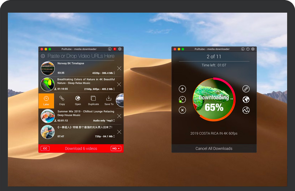 PullTube应用程序可以处理任何时长或大小的视频,您可以在其主窗口中监视下载进度。该实用程序还与通知中心集成,以发送完成警报。