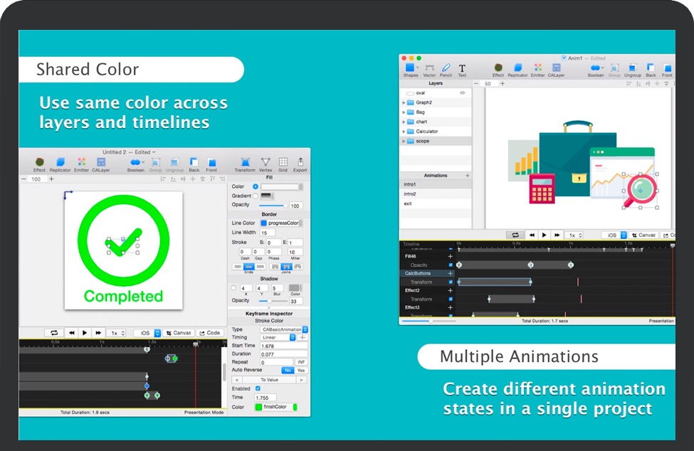 •支持超过25种可设置动画的属性,共同创建令人惊叹的动画!