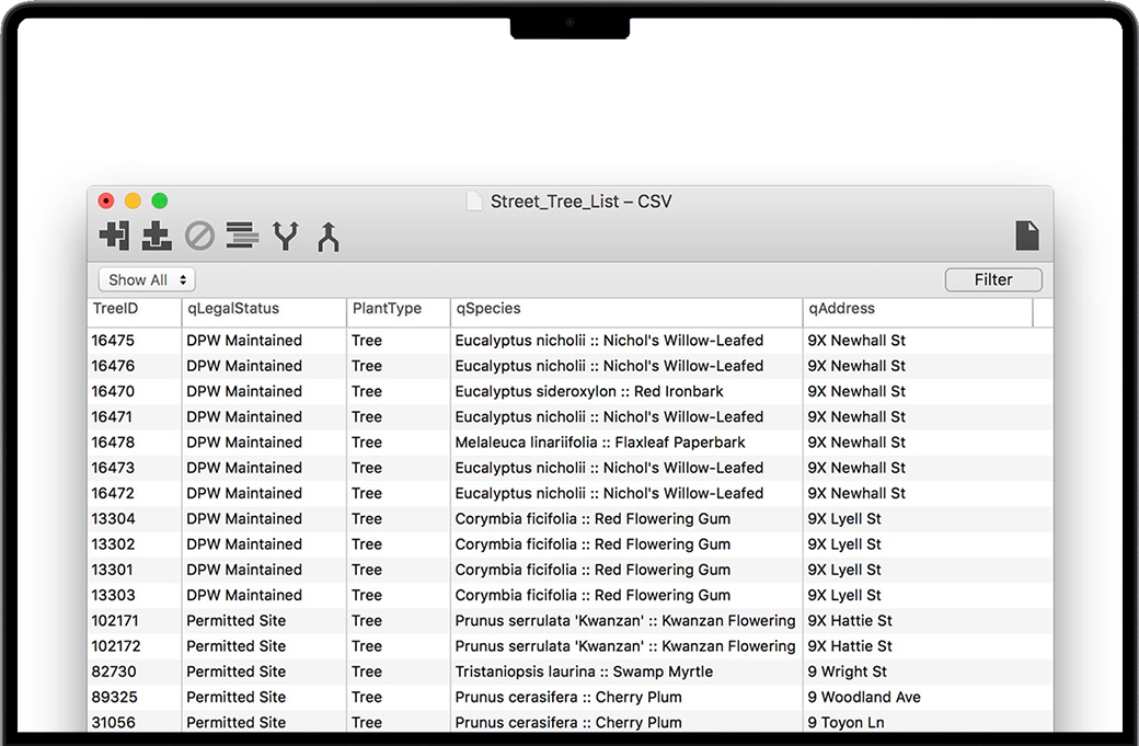 Querious有一个强大的内置编辑器,可以像电子表格一样直接编辑CSV和Tab文件。如果客户机给你一个CSV文件,里面有奇怪的列或格式错误的数据,你可以很容易地清除它的查询。