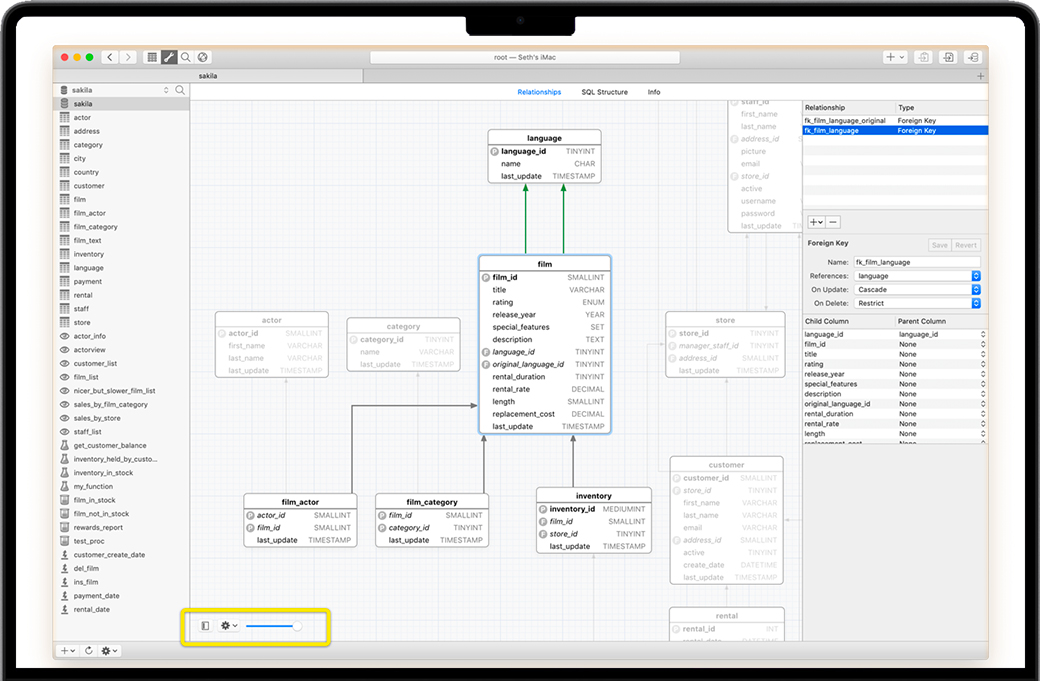 放大和缩小,显示和隐藏字段名称和类型。甚至可以隐藏没有连接的表。