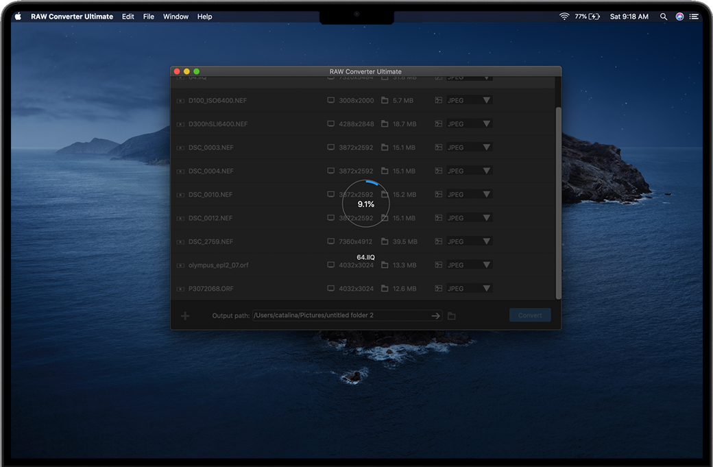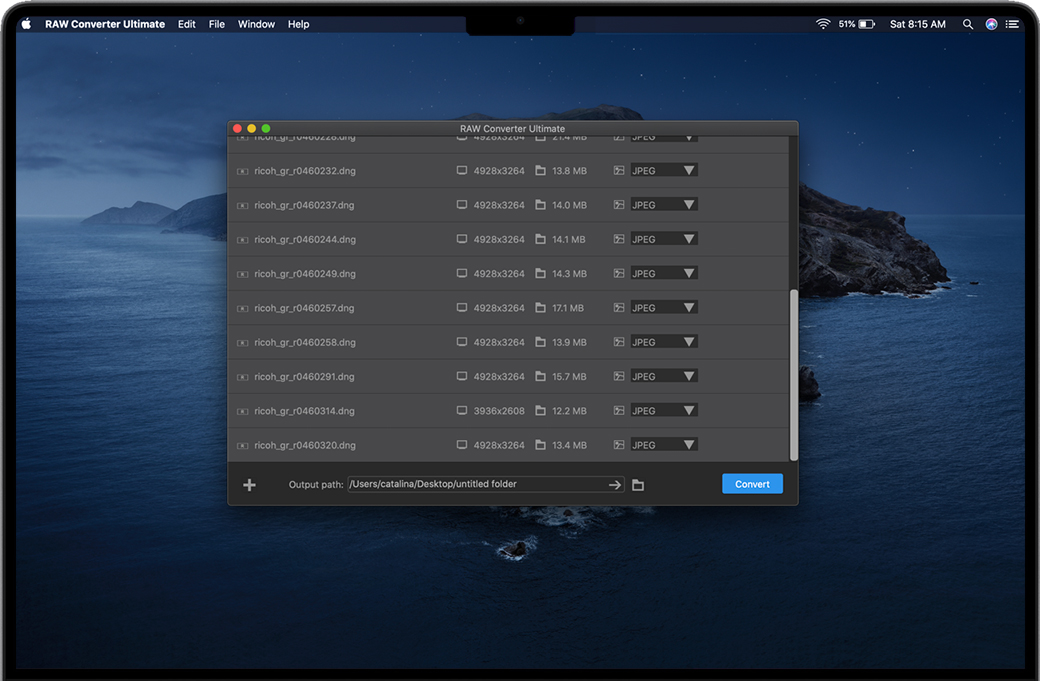 RAW Converter Ultimate for Mac 是一款方便高效的图片格式转换器,主要用于多种专业RAW格式和很多常用图片的转换,以及图片质量和大小的调整。它简化了图像转换的步骤和操作,比其他同类软件更小、更快、更方便,功能强大,操作界面人性化。RAW Converter对于照片的批量导入导出、批量处理和图像参数调整非常方便。通过其简单的操作界面,用户可以自由更改图像格式、尺寸和质量参数。它既支持来自相机、iPhone 设备和 Adobe PS的专业 RAW 格式,也支持 JPG、PNG、GIF、BMP、TIF 等常见格式。