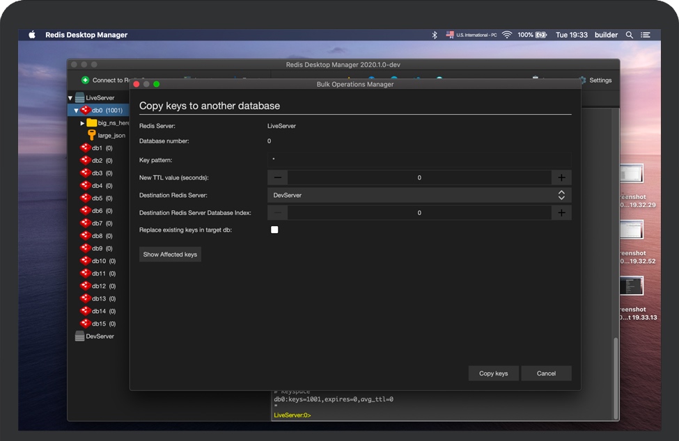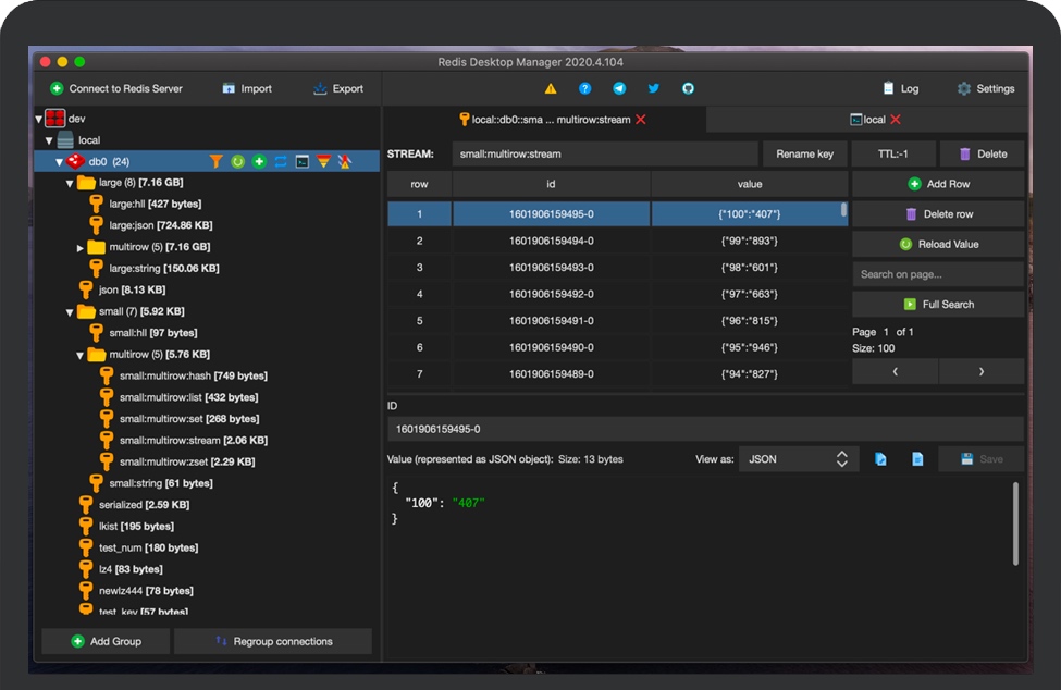 RDM为您提供了一个易于使用的GUI,可以访问您的Redis数据库并执行一些基本操作: