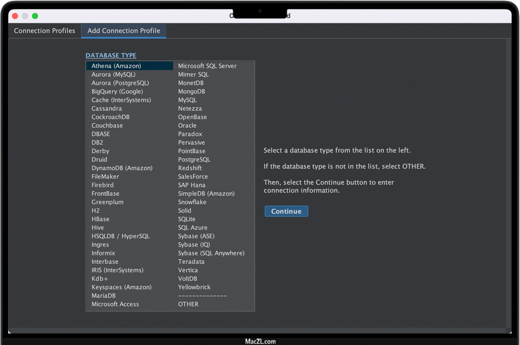 • 内置支持Athena、Aurora(MySQL和PostgreSQL)、BigQuery、Cassandra、Couchbase、DB2、Derby/JavaDB、Druid、DynamoDB、Firebird、FrontBase、Greenplum、H2、HBase、Hive、HSQLDB、Informix、Ingres、Interbase、Intersystems Cache、kdb+、MariaDB、MS Access、MongoDB、MonetDB、MySQL、OpenBase、Oracle、Pervasive、PostgreSQL、Redshift、Salesforce、SimpleDB、Snowflake、SQLite、SQL Server,SQL Azure、Sybase Adaptive Server Enterprise、Sybase IQ、Sybase SQL Anywhere、Teradata、Vertica和VoltDB。还可以连接到任何支持JDBC或ODBC的数据库。