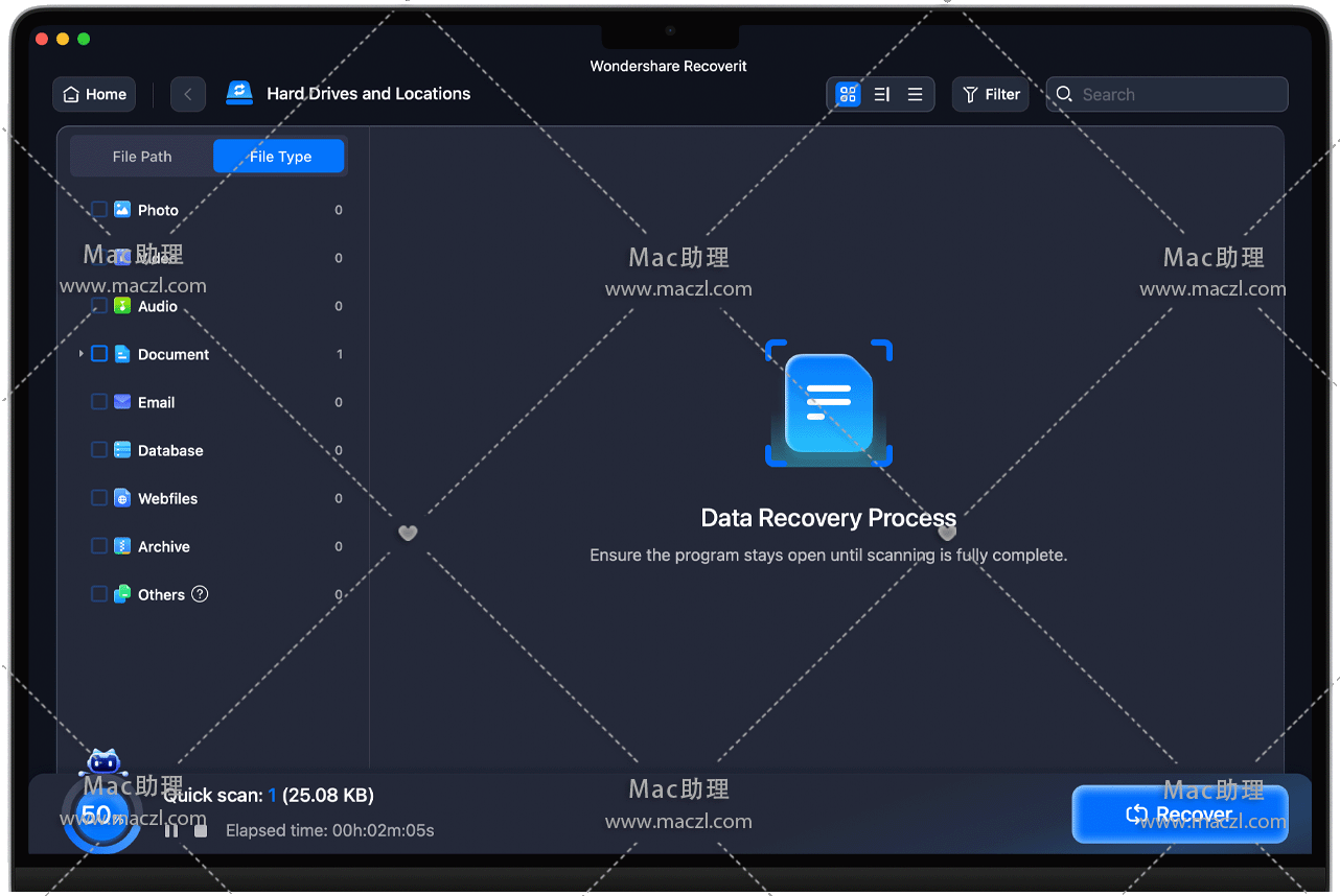 Wondershare Recoverit for Mac 是一款数据恢复软件,中文名叫万兴恢复专家,可以在各种数据丢失情况下从所有存储设备中恢复 1000 多种类型和格式的数据。主要文件类型可以是照片、视频、音频、文档、档案、电子邮件等等。存储设备包括Mac 硬盘、外置硬盘、USB 闪存驱动器、SSD、数码相机、无人机摄像头、SD 卡、CF 卡等。Recoverit还可以通过其内置的视频修复工具修复损坏的视频文件。
