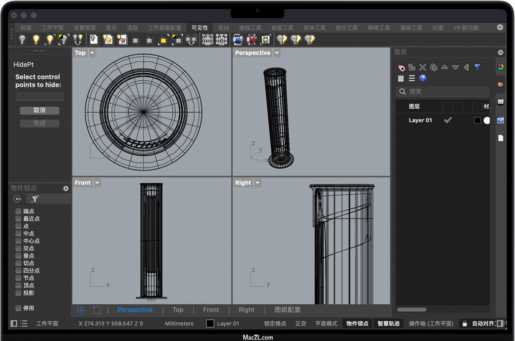 Rhino的模型创建工具使 Rhino 更加灵活、准确、开放,也是 Rhino 受欢迎的主要原因。