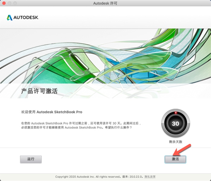 5. 出现软件激活窗口,如下图,我们点击“激活”按扭。