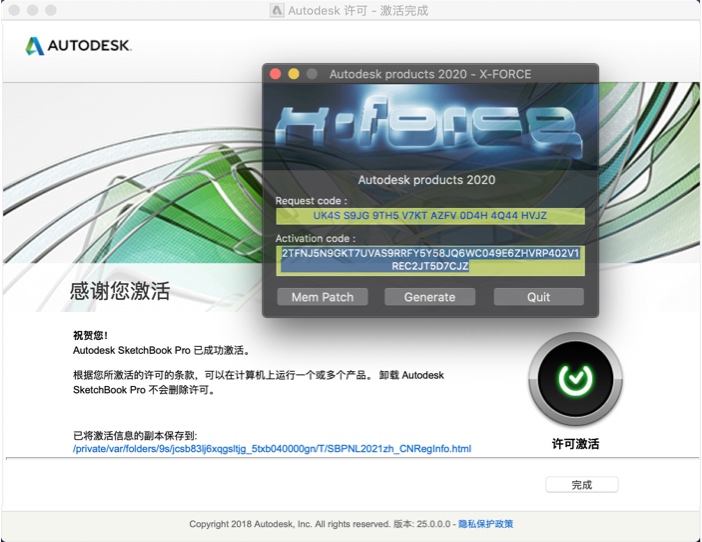 13. 然后点击注册机的 “Generate” 按钮生成激活码,如下图。