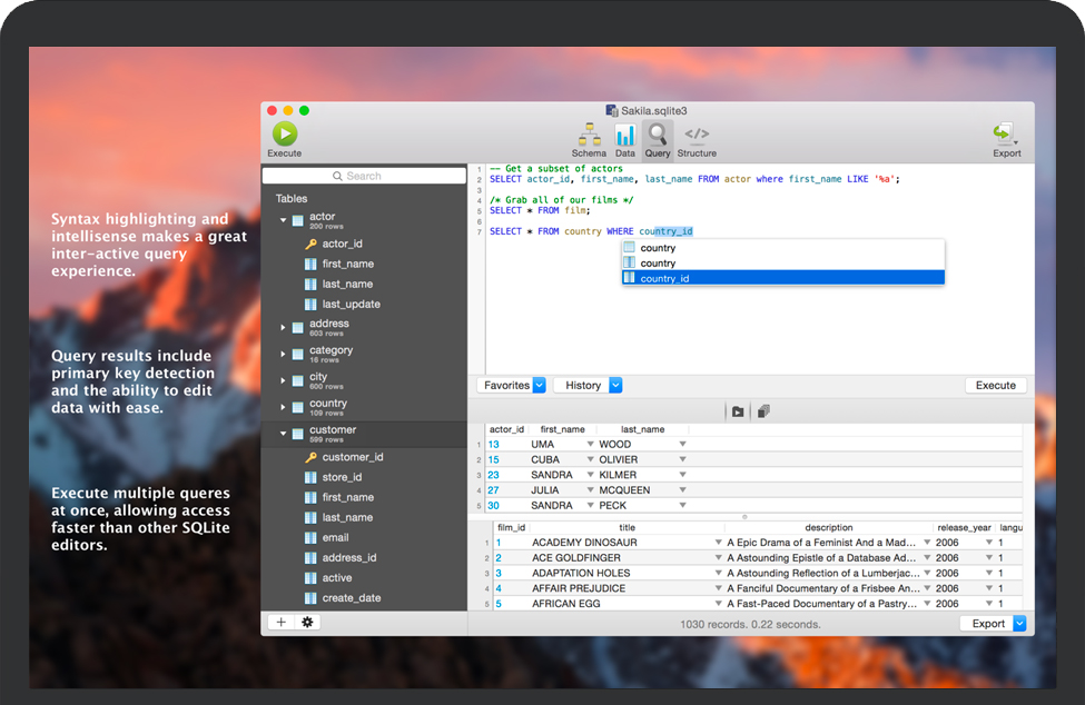 SQLPro for SQLite 是一款简单,功能强大的SQLite管理器。SQLPro for SQLite也是是高级的sqlite编辑器。它具有易于浏览的界面,能够执行从最基本到最高级的任务。