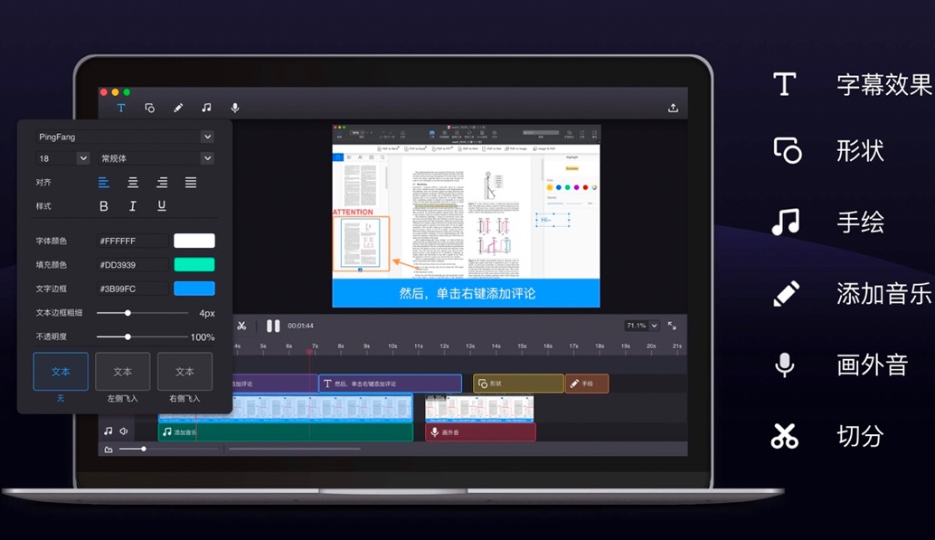 -专业的编辑工具:使用旁白(画外音)和动态字幕效果,制作属于你自己的短视频