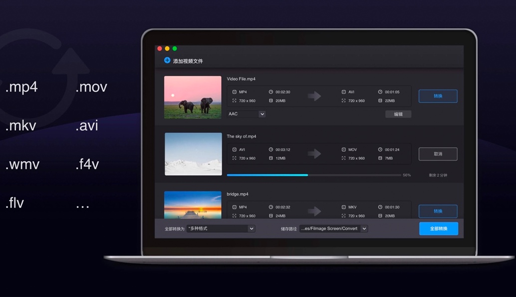 -将任何视频转换为MP4,MOV,3GP,VOB,MKV,M4V,WMV,AVI,MPG,FLV,F4V,SWF,TS等多种其他格式