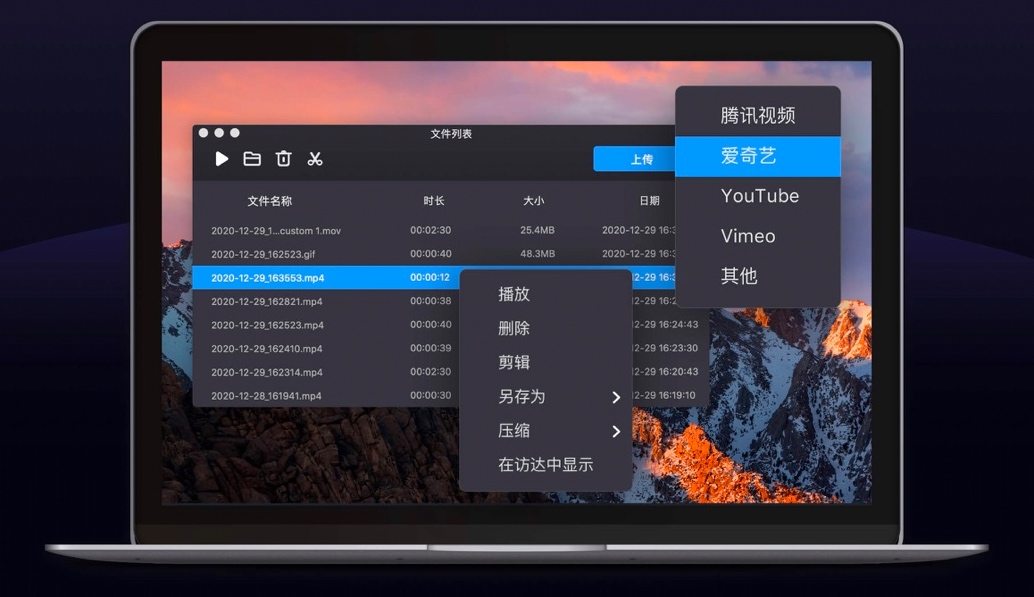 -上传或分享音视频文件至爱奇艺、腾讯、YouTube等多个平台