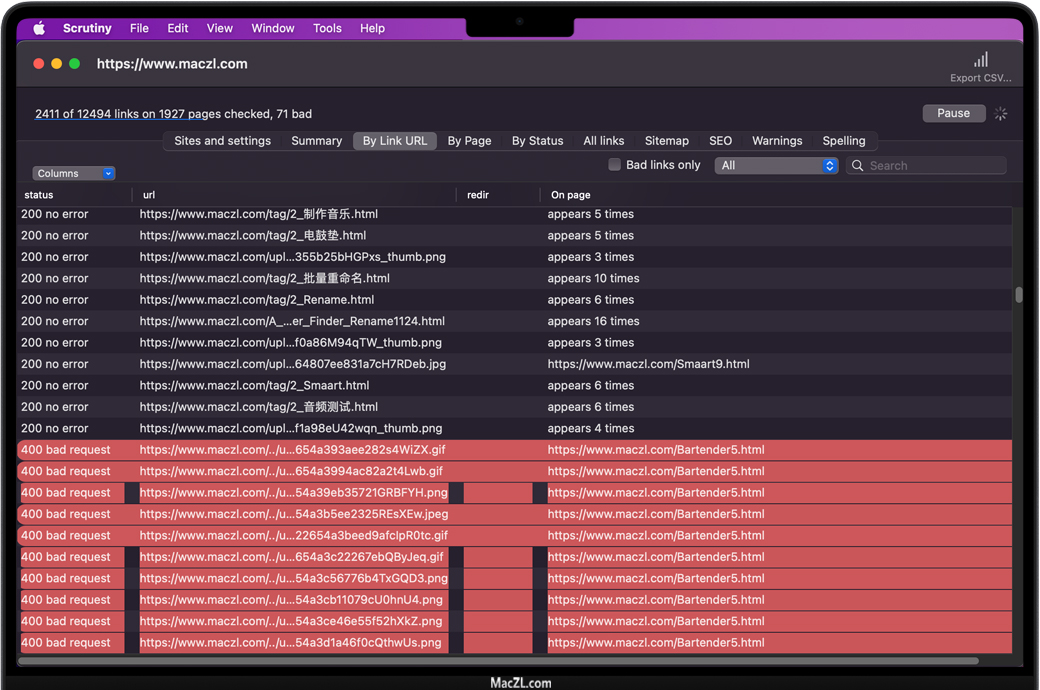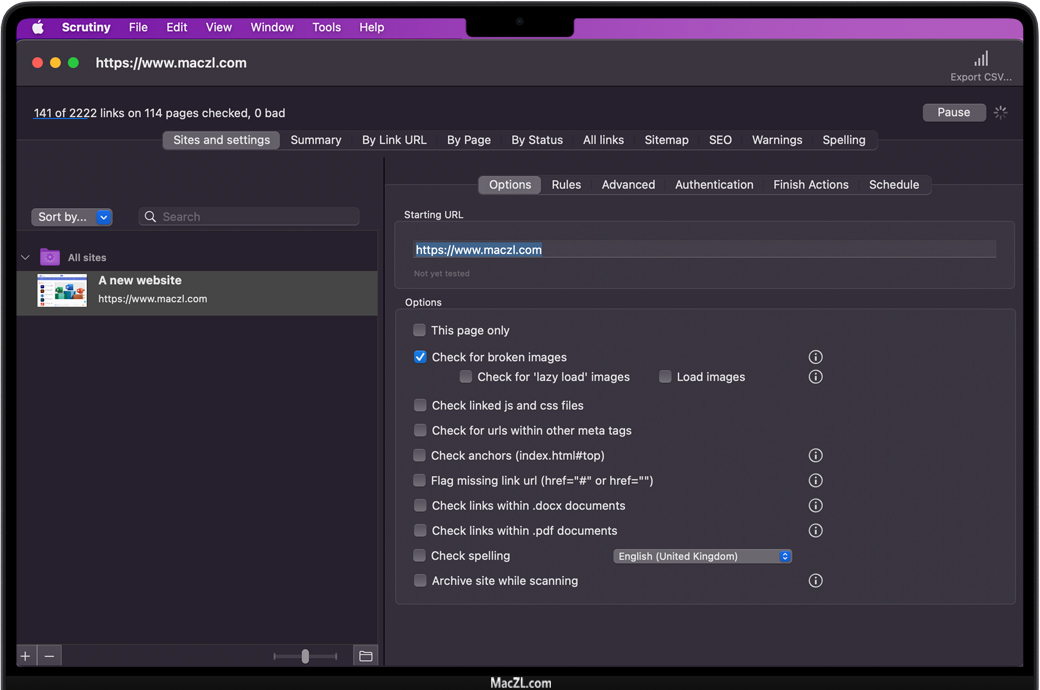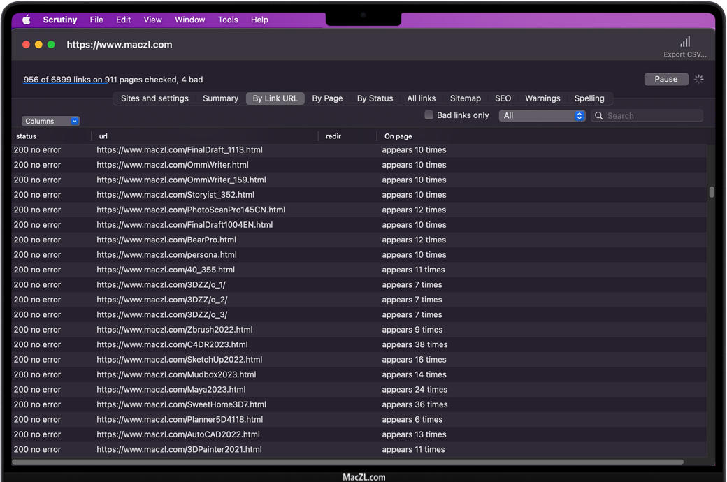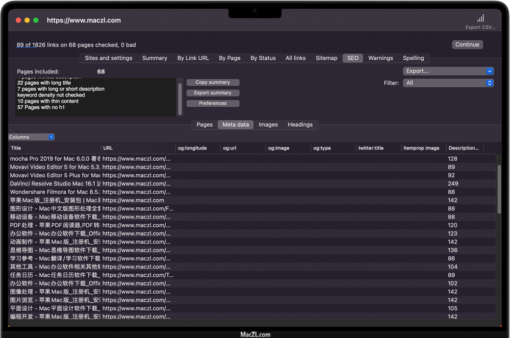 Scrutiny for Mac 是一款适用于Mac的SEO优化工具。针对搜索引擎优化您的网站,可以提高您在搜索引擎中的排名,自然可以吸引更多用户访问您的网站。Scrutiny同样也是一款网站分析工具,只需要输入网址即可对网站进行全方位的扫描,可以帮助您检查网站上是否有无效链接,帮助您创建站点地图,检查拼写错误,运行SEO检查任务等等。