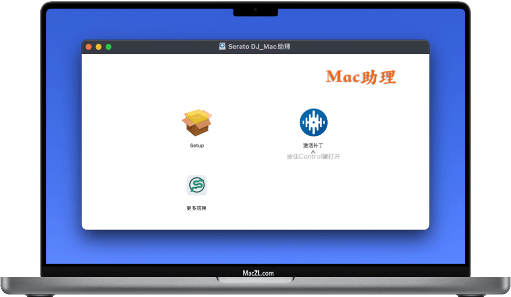 Mac版Serato系列软件下载完成打开后如上图,安装包内两个文件,第一个为Setup;是软件主体安装包,第二个为激活补丁,请参照下文进行安装激活即可。