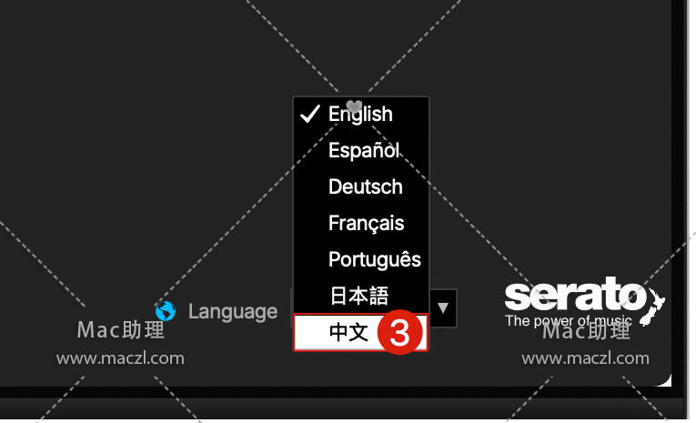 截止2025年底,Mac版Serato系列软件部分(如Serato DJ Pro)已支持简体中文,但默认UI是英文的,需参照下列步骤自行在软件的偏好设置里设置即可。